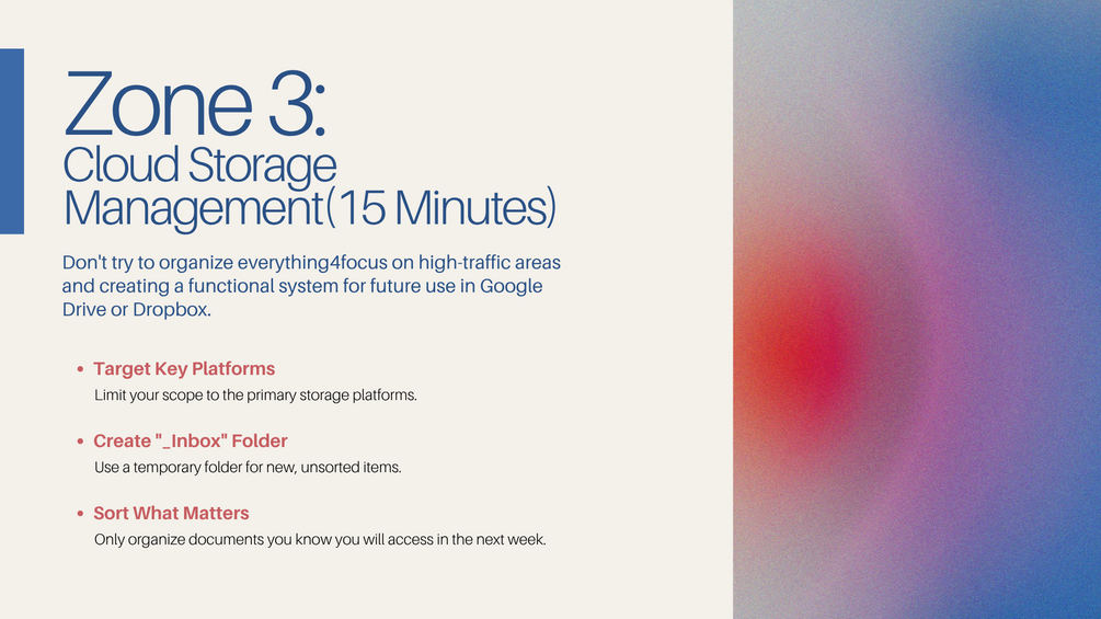 A clean, aesthetic presentation that teaches you how to declutter your digital space in just one hour.